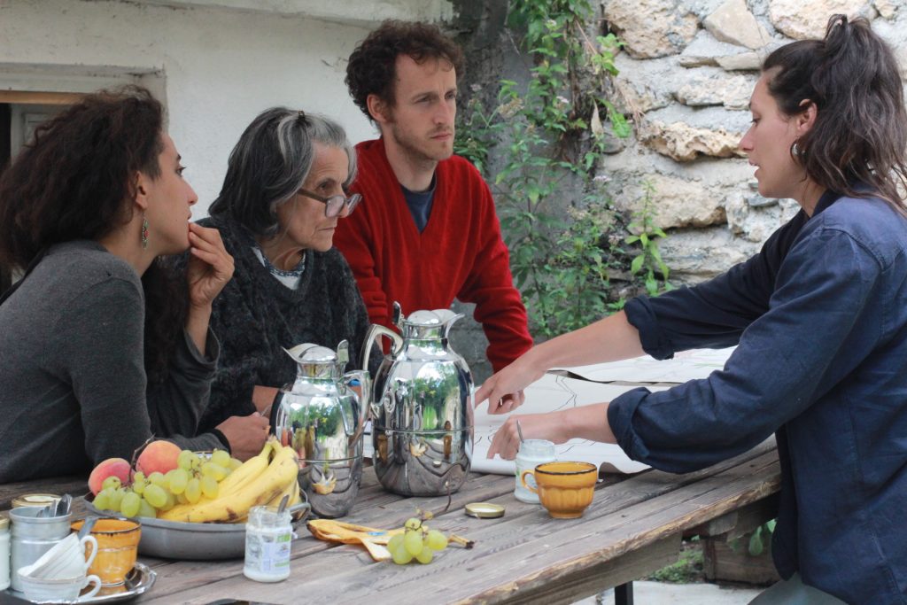Il concept nasce dall’incontro del collettivo con l’associazione Borgata Ghio con la quale è stata realizzata una breve residenza ad Agosto 2022, presso l’antica borgata in Val Maira, a scopo di indagare le possibili linee di sviluppo del progetto. L’Atlante degli Immaginari è così diventato parte del macroprogetto artistico e territoriale IperBosco, come proposta di ricerca nell’ambito delle metodologie innovative interdisciplinari per la gestione comunitaria delle risorse naturali. CIFRA danzateatro come partner del progetto “IperBosco-Una forma innovativa di community based resource management”, premiato dal bando Simbiosi di Compagnia di San Paolo, nel corso 2023 ha guidato un tavolo di confronto interdisciplinare per lo sviluppo della metodologia dell’Atlante degli Immaginari, di approfondimento di altre esperienze affini e momenti di pratica. A giugno 2024 il collettivo ha approfondito e sviluppato le potenzialità applicative del dispositivo durante una residenza di ricerca nel territorio di Lauriano (TO).